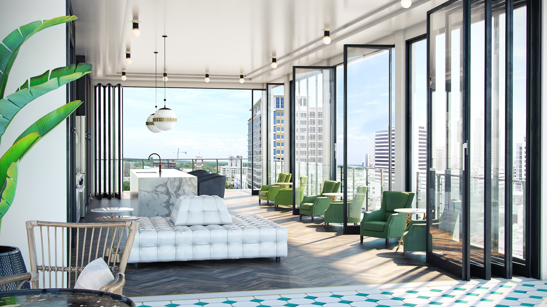 The Mason also features a rooftop penthouse that can be booked for overnight stays or private parties, as well as a lobby bar and restaurant. One bedroom units are leasing now.