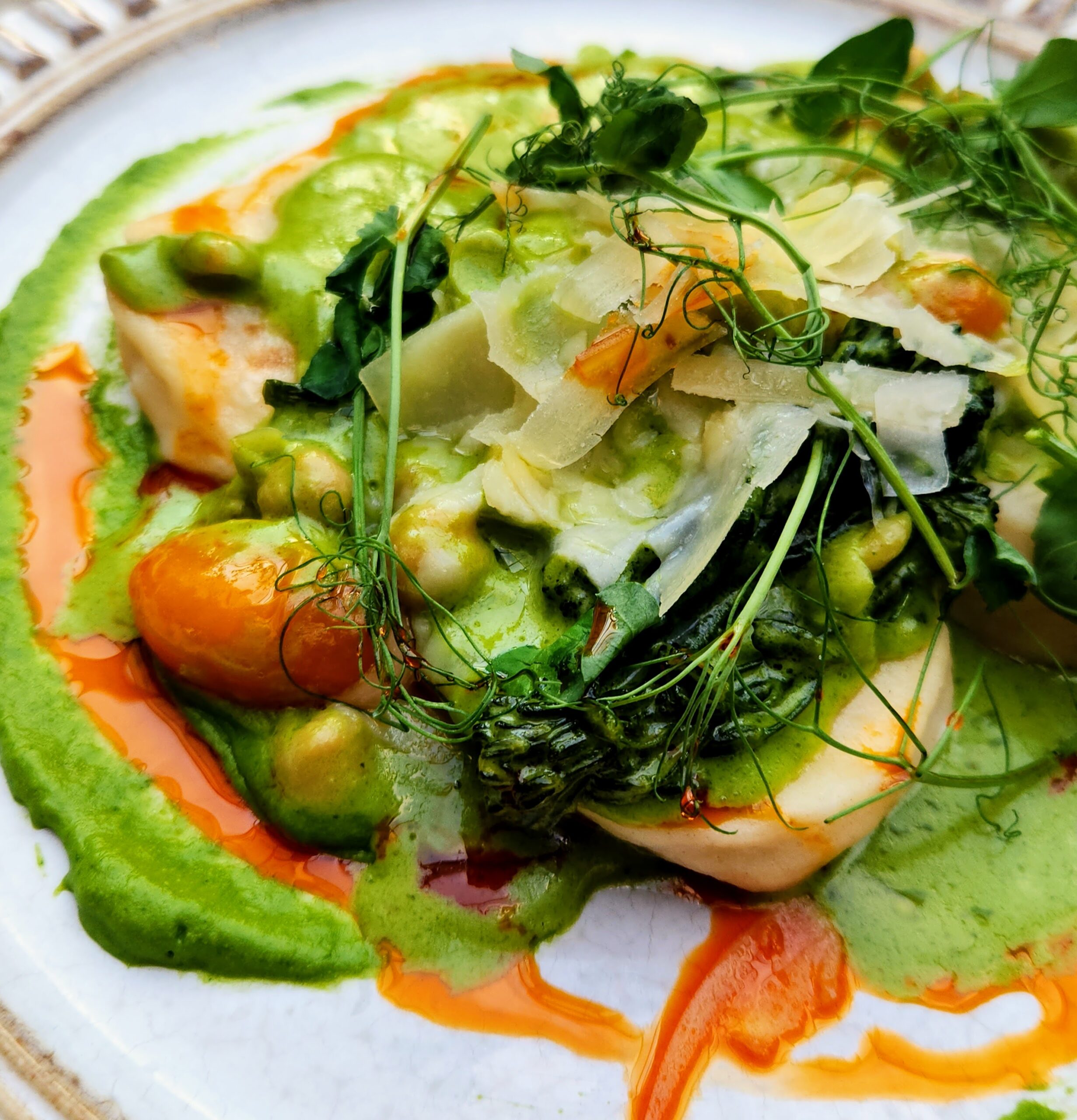 Although seafood takes center stage in many of the menu selections, the coastal Mediterranean influence adds a unique flair to the dishes. The shareable pastas offer several delectable options. The Morcilla Mezzaluna consists of pasta pillows filled with house-made morcilla sausage and cantar de Covadonga creme, topped with pignoli and crispy Brussels sprout shavings. The airy pockets encapsulate all the ingredients for a perfect bite. Scallion pesto, charred broccolini and blistered tomatoes adorn the Ricotta Gnudi plate, adding visual appeal to the lighter pasta option.