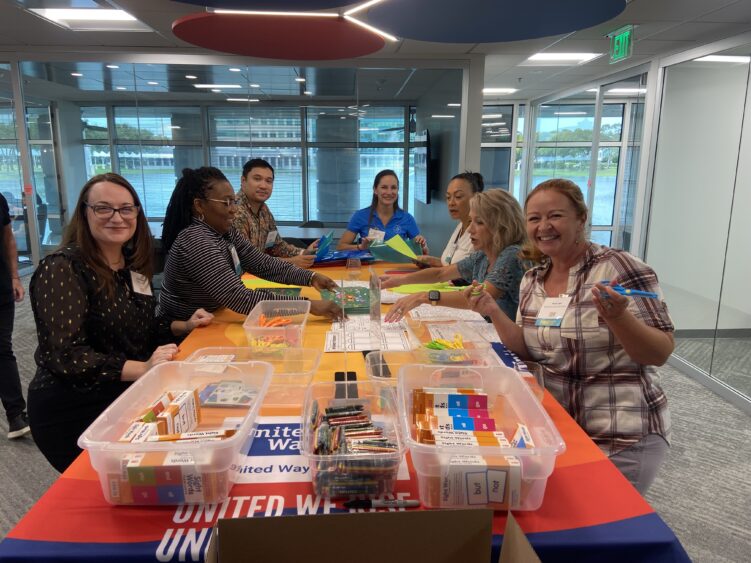 Finalists for the 2023 Apogee Awards gathered at United Way’s new office space for a volunteer activation where they put together more than 100 literacy kits that will support our efforts to elevate early learning.