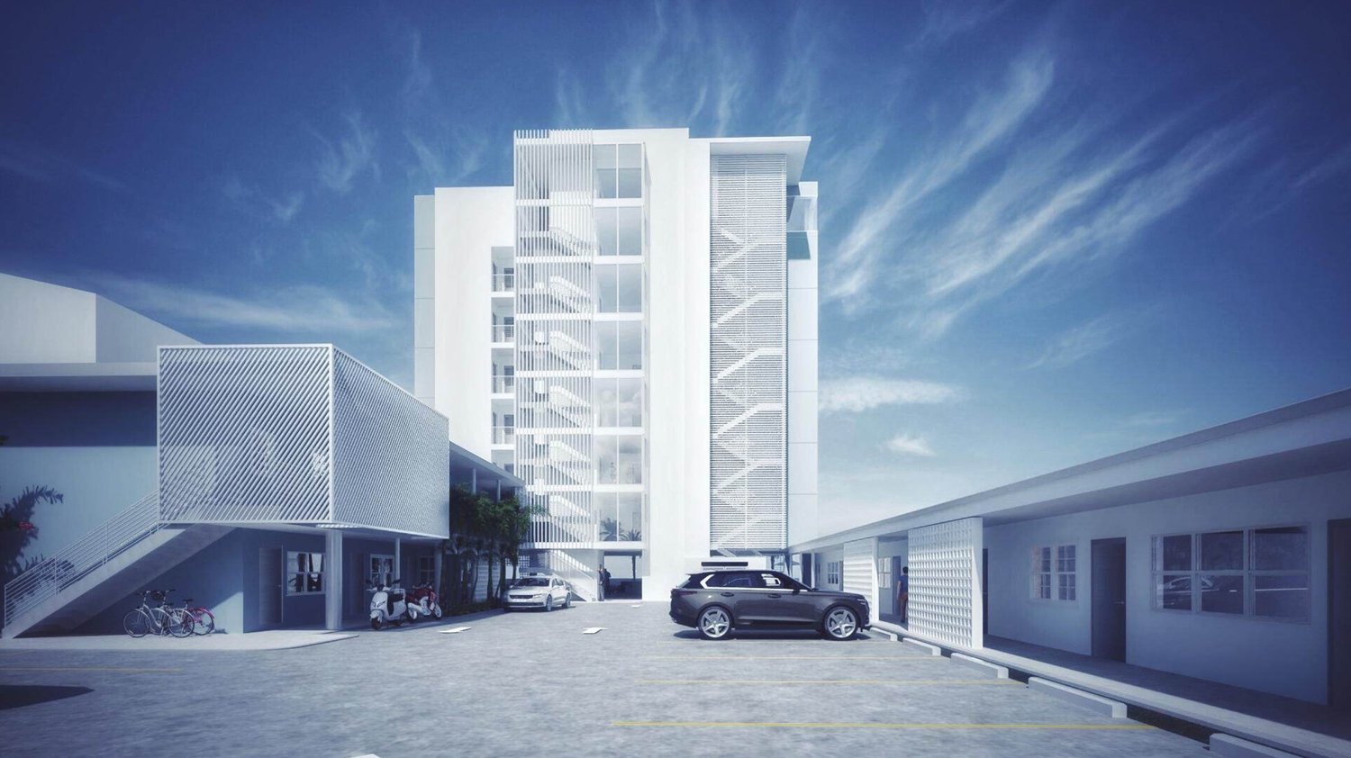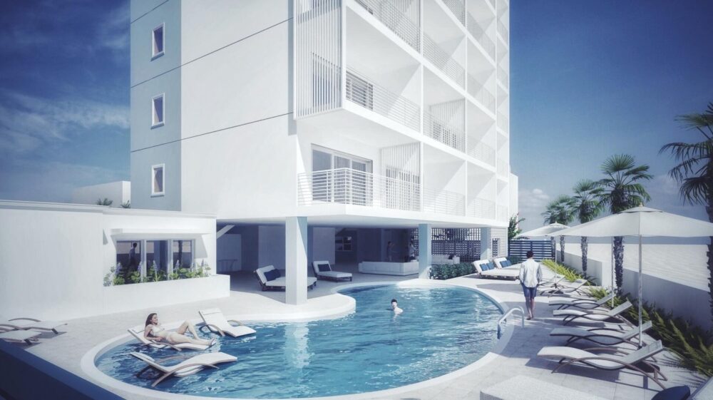 St. Petersburg architect Jack Bodziak and partner Britt Browne Hayes have released new renderings revealing a 1950s-inspired design for the new building, which will include a rooftop restaurant, and bar, and ground level pool.