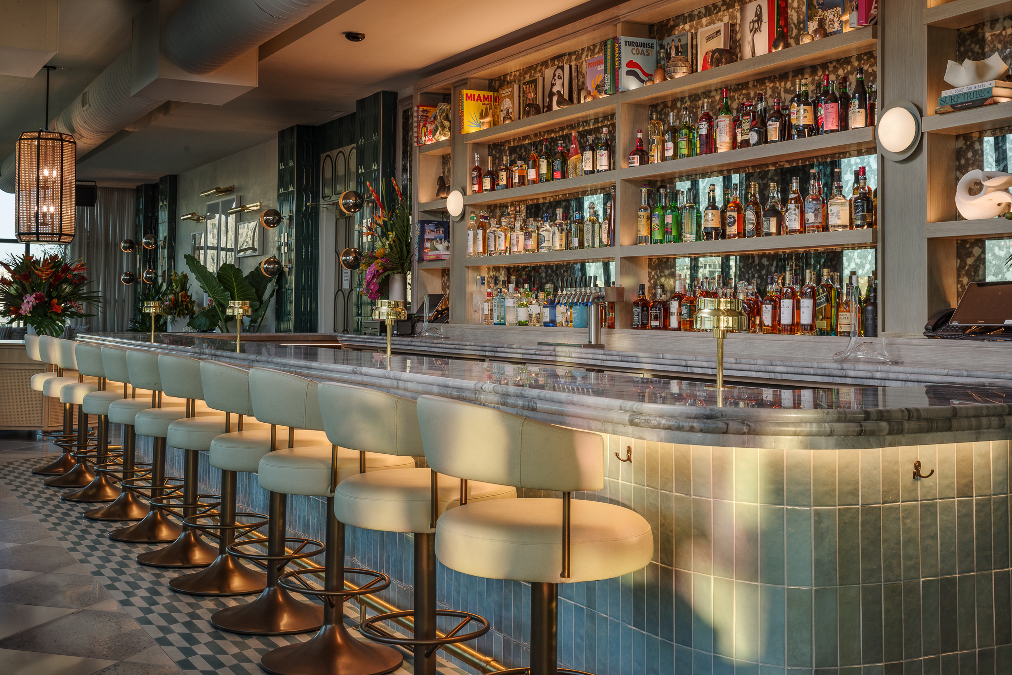 The 4,000-square-foot space includes a marble-topped indoor bar, an outdoor patio and a seating capacity of up to 250. Guests can choose between indoor booths or outdoor mosaic tables, surrounded by greenery.