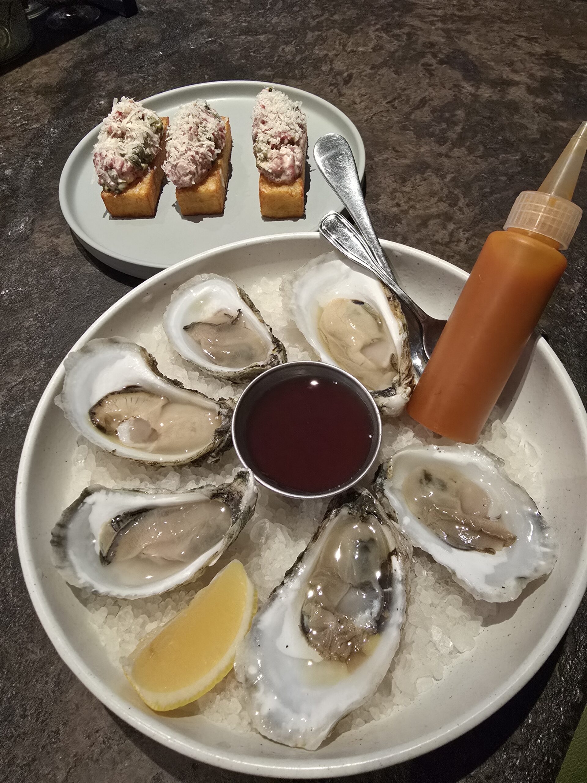 The beef tartare takes a bold step into culinary artistry, pairing finely hand-cut beef with the smoky richness of aioli, wrapped in a delicate embrace of crispy golden potato. The dish is elevated further with bursts of capers and the sharp tang of finely diced cornichons, creating layers of flavor that awaken the palate. One might whimsically call it an upscale ode to burgers and fries, but its refinement lies in the perfect balance of textures – the tender beef melding with creamy aioli, all contrasted by the satisfying crunch of the potato. A dish that’s as indulgent as it is inventive, this tartare redefines comfort food with elegance and flair.