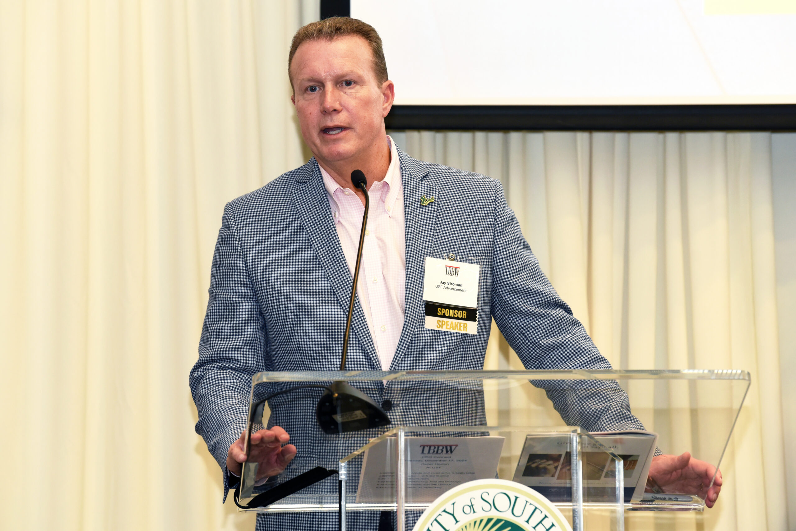Tampa Bay Business and Wealth held its December CEO Connect with Oscar Horton, CEO of Sun State International Trucks and Horton Holdings. The event was sponsored by The Bank of Tampa, Forvis Mazars, Tampa Bay Thrives, nPerspective, Source 1 Solutions and Holland & Knight. It was held at the Sam and Martha Gibbons Alumni Center, at the University of South Florida and hosted by the USF Foundation.