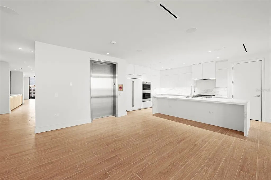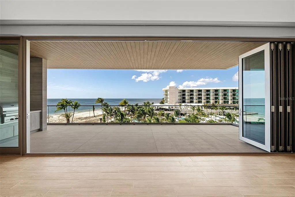 This residence, in the Armand Building, offers views of the Gulf of Mexico and an open-concept floor plan. Floor-to-ceiling glass doors open to a large terrace equipped with a built-in gas grill, ideal for indoor-outdoor living. The kitchen is equipped with Wolf and Sub-Zero appliances, including a six-burner gas cooktop, double ovens and a side-by-side refrigerator/freezer with integrated cabinetry. A semi-private elevator, with keyless entry, connects the residence directly to a private two-car garage. The owner’s suite has a walk-in closet, a soaking tub, a frameless walk-in shower, dual vanities and separate water closets. The technology-ready infrastructure allows for easy integration of home automation. The Residences at The St. Regis Longboat Key combine private living with access to resort amenities including concierge services, a spa, in-residence dining, a residents-only pool and clubhouse, a fitness center and beachside cabanas.