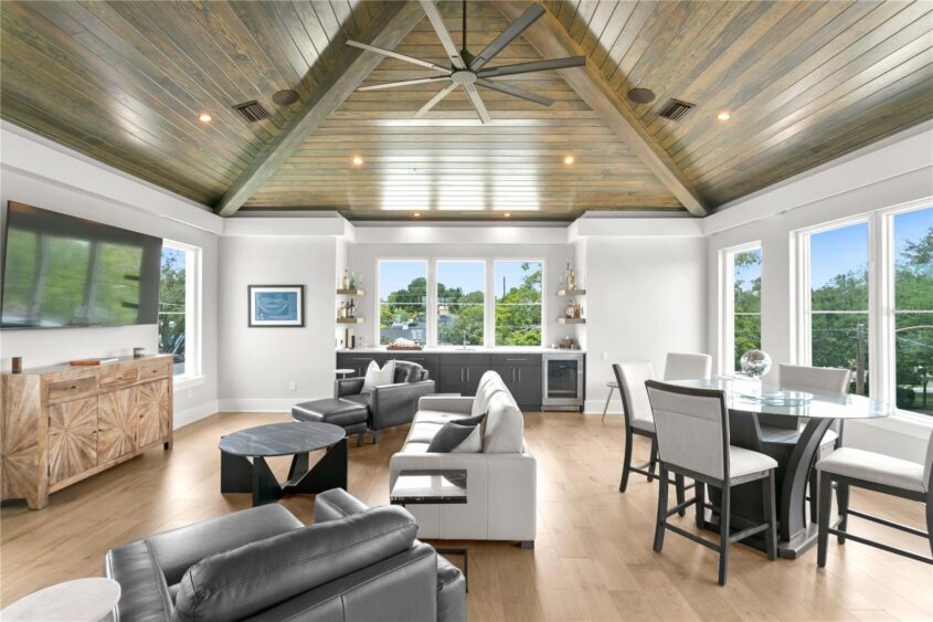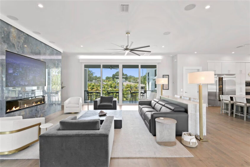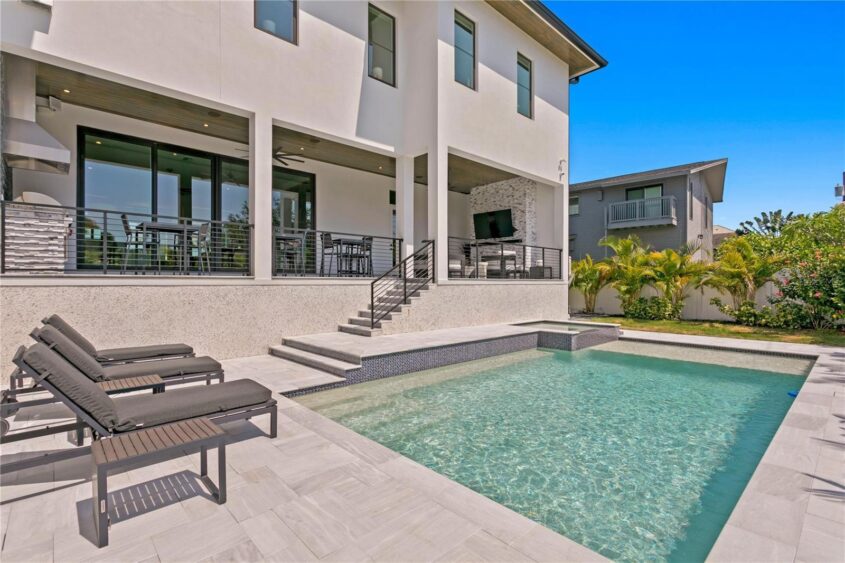 Located along the shores of Coffee Pot Bayou, this contemporary waterfront estate, built in 2022, offers a blend of luxury and modern design.
