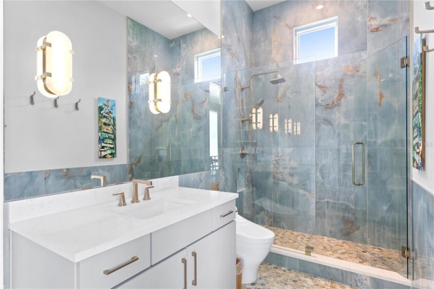 A wraparound porch welcomes visitors, while natural light pours into the home through floor-to-ceiling, impact-rated windows and doors.