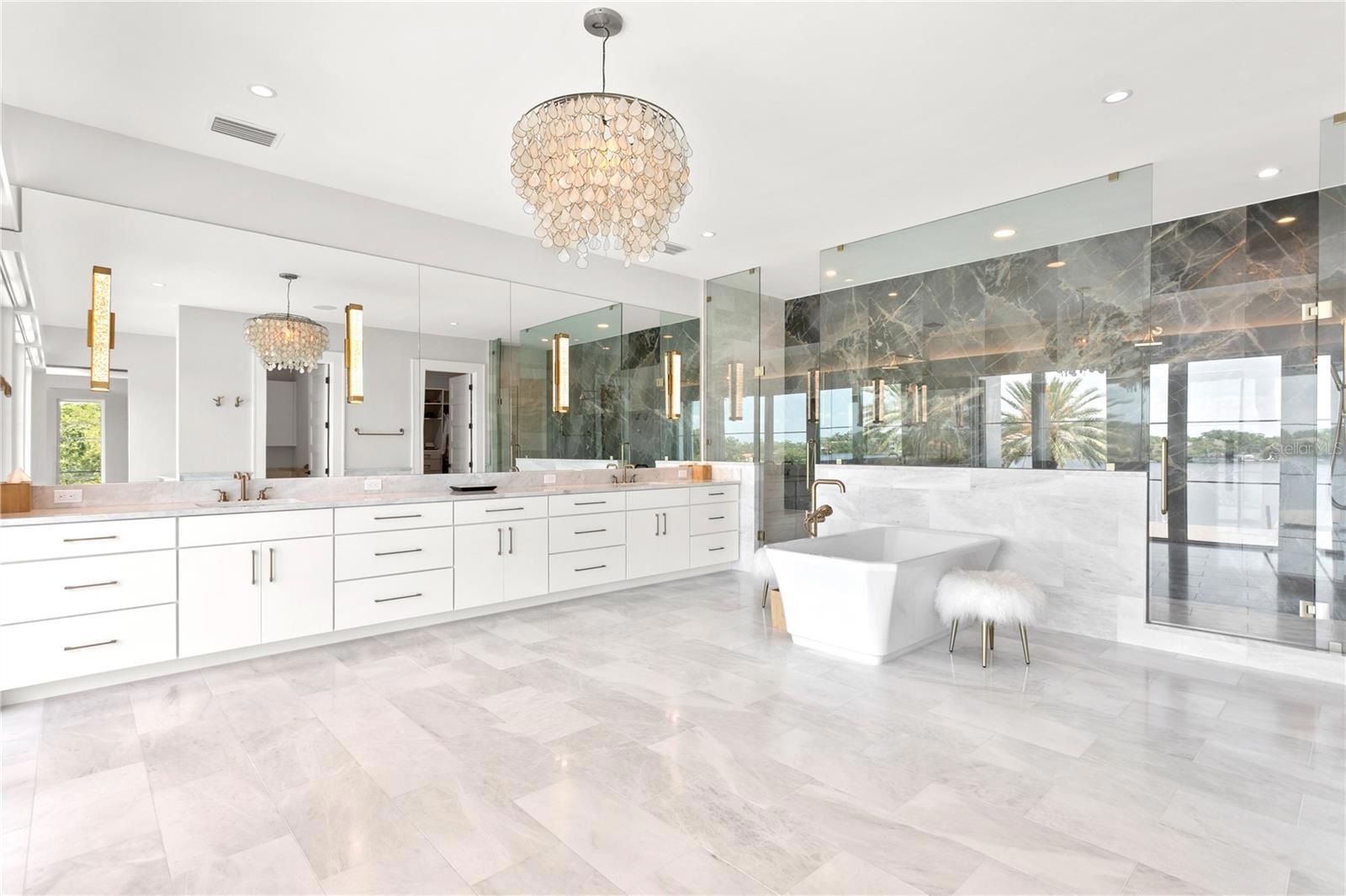 The estate has a heated saltwater pool and spa, surrounded by marble decking and landscaping. The lanai includes a wet bar, Wolf BBQ grill, SubZero refrigeration and a natural gas fireplace.