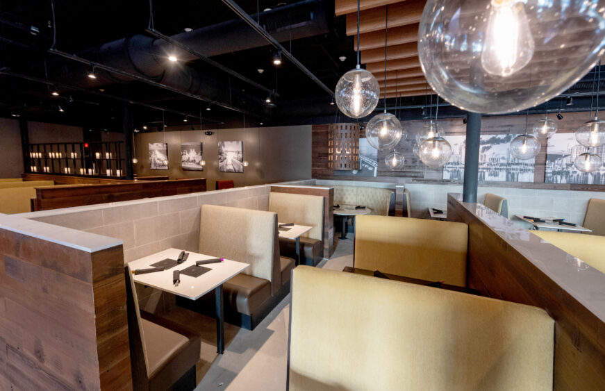 The 4,900-square-foot location includes 191 seats across multiple dining areas, an indoor-outdoor bar and an eight-seat chef’s table that offers views into the kitchen. New features also include local artwork and updated design elements using wood and marble.