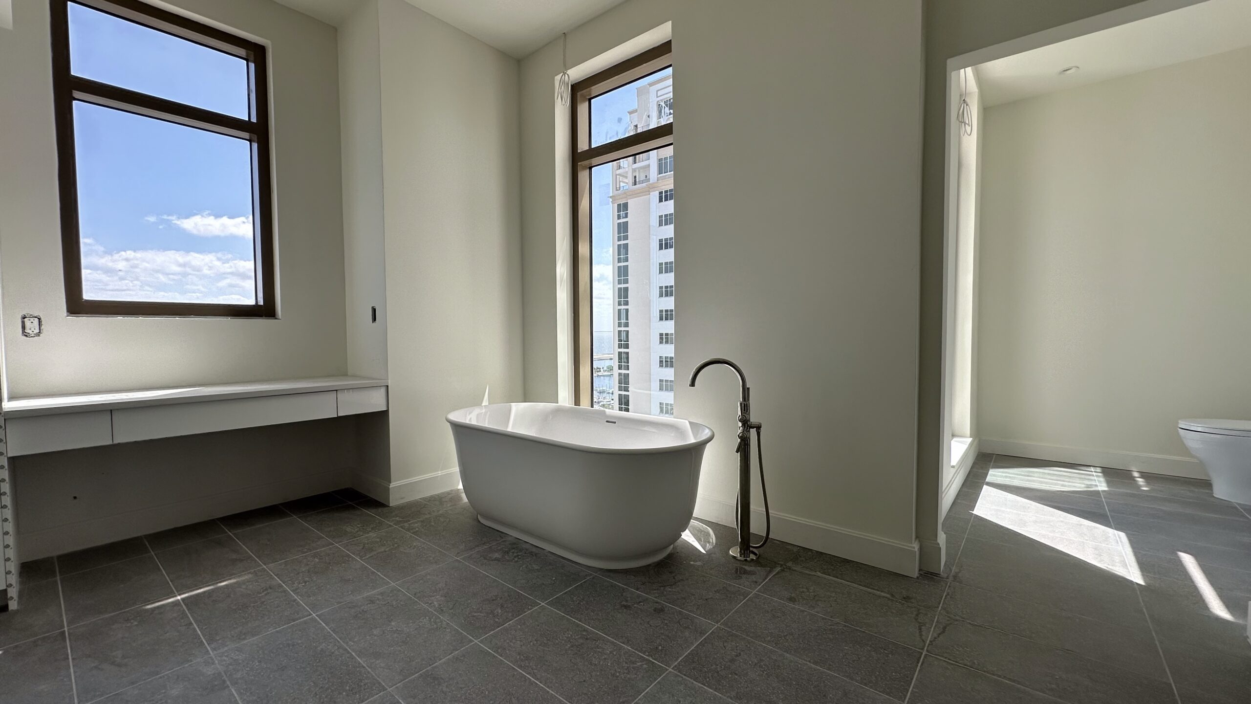 Designed by PLACE Architecture, the building offers a mix of two-residence-per-floor layouts and full-floor penthouses. Residences range from 2,156 square feet to 3,344 square feet, including private elevator lobbies, expansive terraces, high-end appliances from Thermador and Gaggenau, and custom finish options.