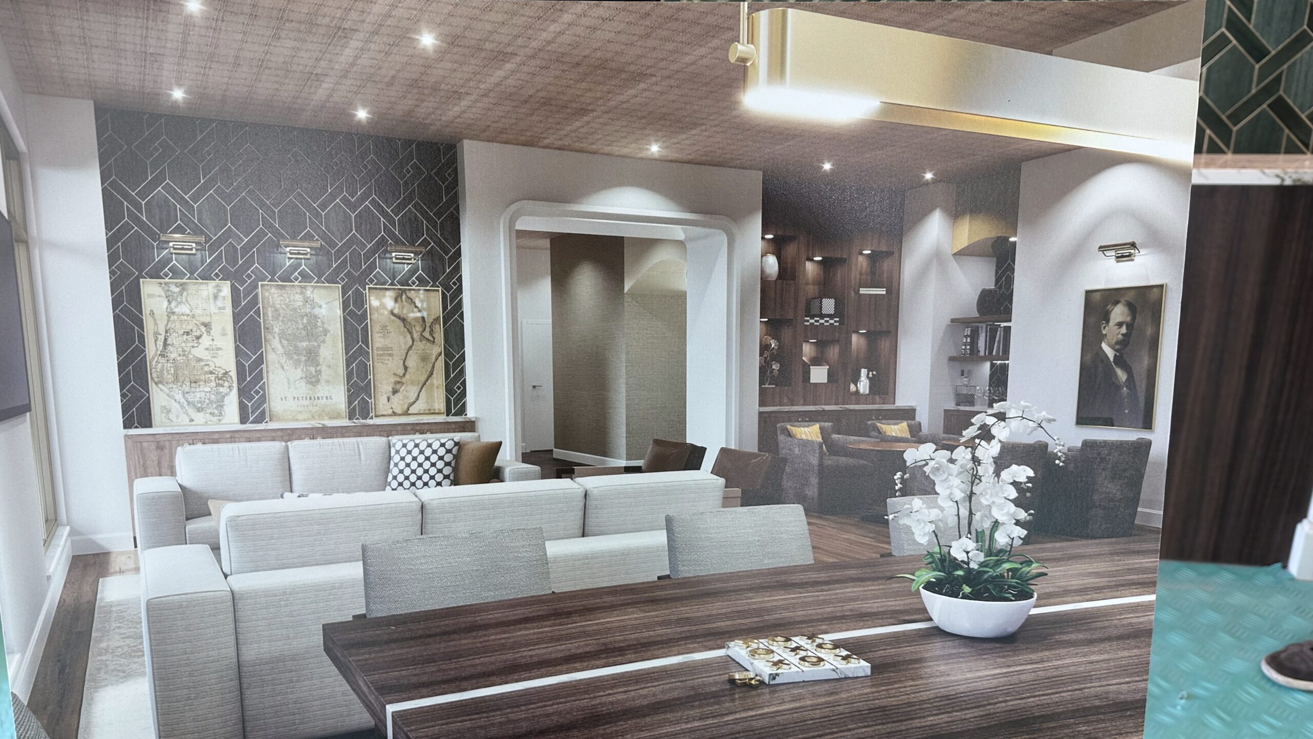 Amenities include a resort-style heated pool, shaded cabanas, multiple fire pits, a fitness center, wellness room, concierge service and The Salon—a private residential lounge with indoor and outdoor seating.